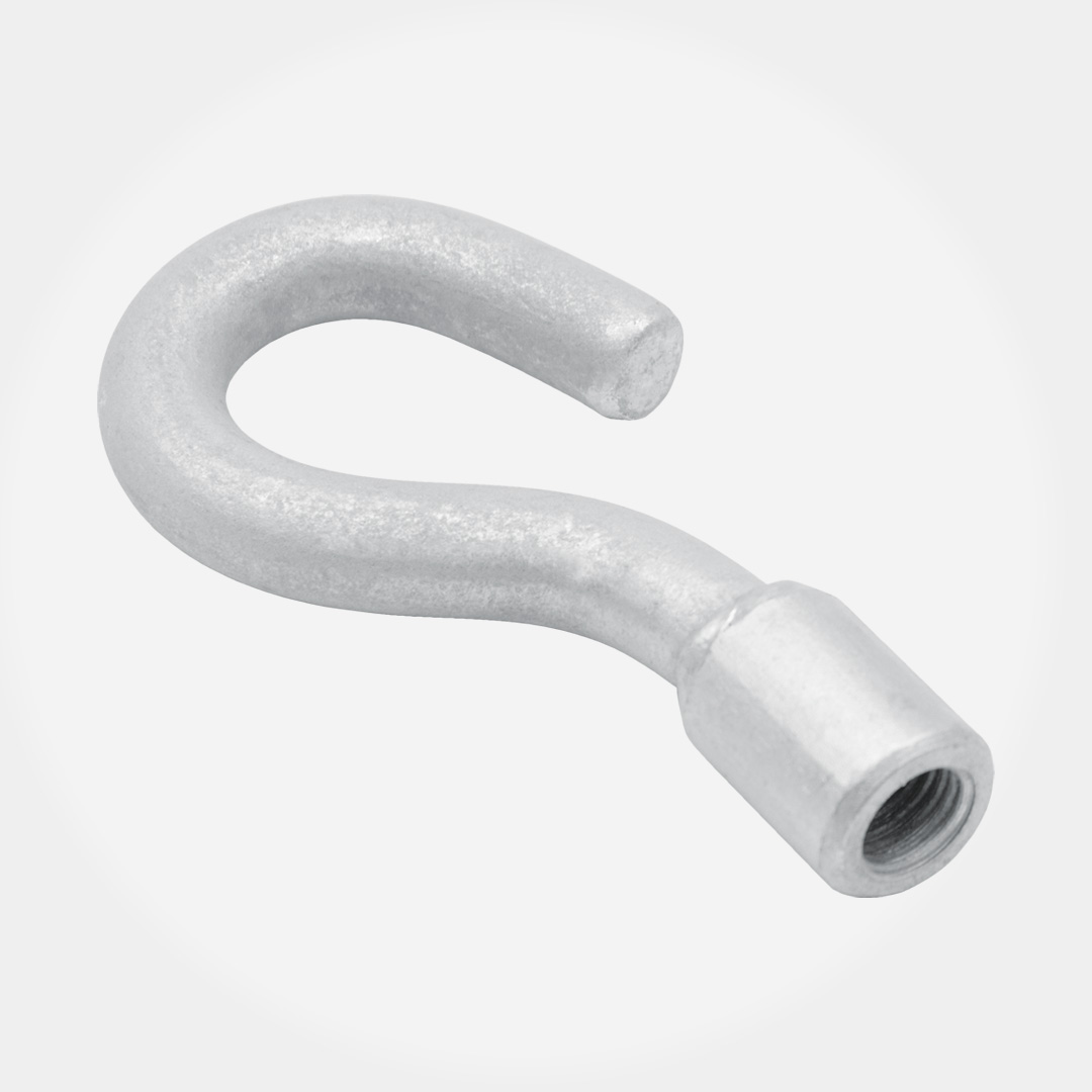 Крюкообразная гайка применяется для крепления на сквозной шпильке PD16. Гайка выполнена из оцинкованной стали повышенной прочности с высокой устойчивостью к коррозии. Монтируется на столбах или стенах на предварительно установленные сквозные шпильки D16.