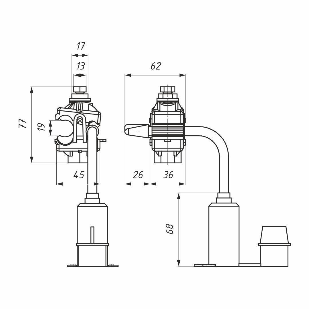 - Корпус зажима находится в открытом положении, позволяющем свободно размещать провод при монтаже.