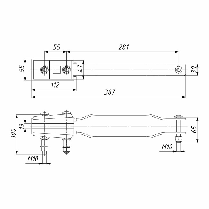 Зажим крепится на крюках и кронштейнах с помощью единственного болта.