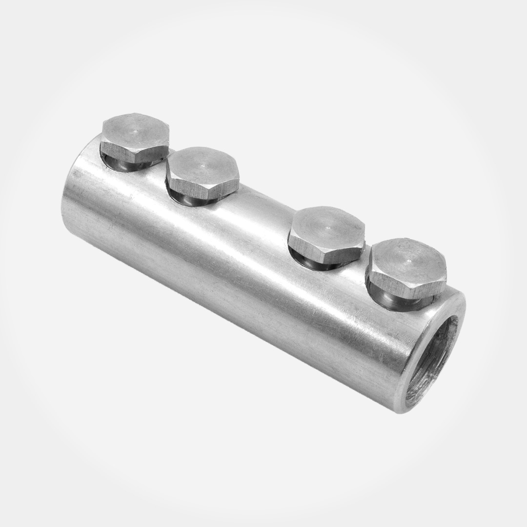 Соединитель представляет из себя гильзу цилиндрической формы с четырьмя болтами V-образногорасположения. Соединение наконечника с проводом осуществляется затяжкой болтов до момента срыва головок.