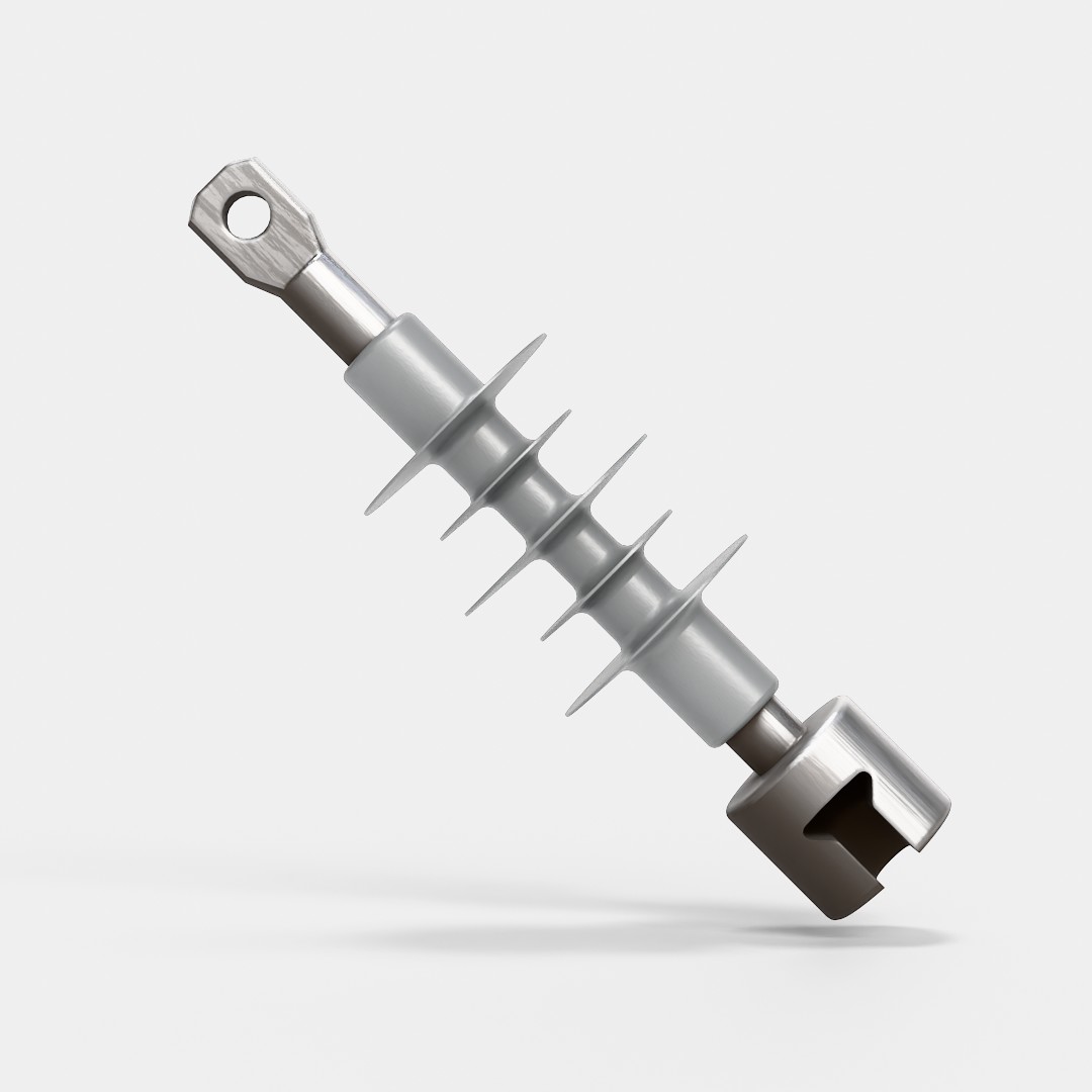 Конструкция представляет собой высокопрочный стеклопластиковый стержень, МРН не менее 70 кН защищенный цельнолитой кремнийорганической ребристой оболочкой, снабженный напрессованными стальными оцинкованными оконцевателями.